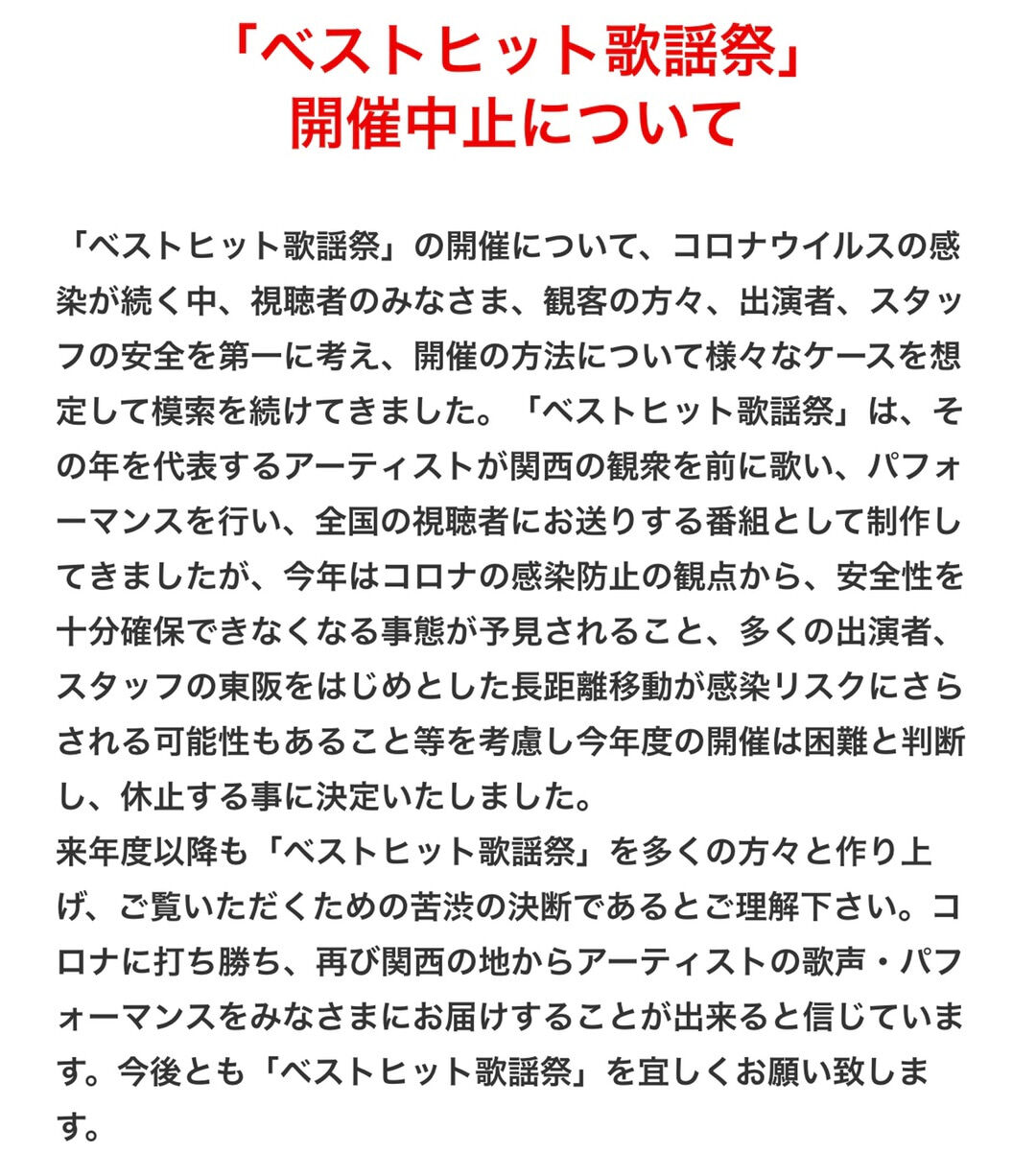 2020ベストヒット歌謡祭中止の真相は 年末年始の他の特別音楽番組はどうなる あたらしいもの好き くいしんぼうな薬剤師ママブログ